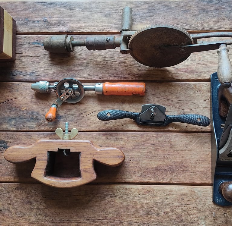 As ferramentas manuais são o coração da marcenaria artesanal, permitindo um controle fino e aprimorando a conexão do marceneiro com a madeira. Entre as mais utilizadas estão: plainas para nivelar e alisar superfícies; formões para entalhes e encaixes precisos; serras manuais para cortes detalhados; martelos e malhos para montagem; e esquadros e trenas para medição e marcação. Gabaritos, como os de furação e corte, são frequentemente utilizados para garantir a precisão e a repetibilidade em tarefas específicas, otimizando o tempo e minimizando erros.